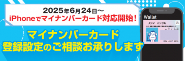 さらにノジマ小田急町田店では、6月24日(火)より提供開始となった「iPhoneのマイナンバーカード(Appleウォレットに入れて利用できるマイナンバーカード。デジタル庁発表)」設定のご相談も承っております。