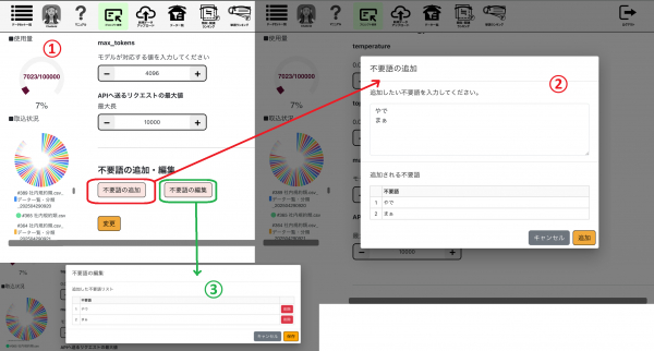 ChatBrid ではこれまでに様々な種類の数百語を不要語として標準登録し、平均精度を高めてきました。今回の強化により、ユーザー自身が追加・編集できる独自リストを持てるようになりました。