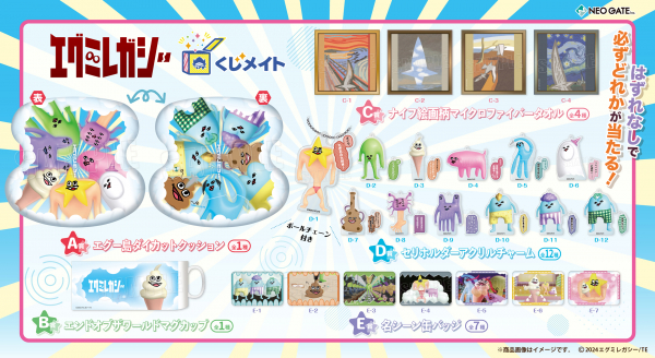 アニメイト通販「くじメイト」から、アニメ『エグミレガシー』のオンラインくじが登場! 大人気声優・江口拓也氏原案の味がありすぎるキャラクターたちが、ポップでクセ強なグッズになりました!