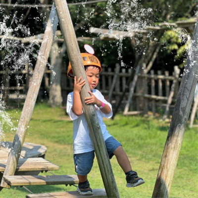 アスレチック「アッパレ!戦国大冒険!」の童コースに参加する子どもたちを対象にしたウォーターイベント。参加者は水に濡れることで色が変わる“ポイ”をつけたヘルメットを装着し、アスレチックに挑戦。“ポイ”を濡らすことなく、ゴールできた方には、「クレヨンしんちゃんアドベンチャーパーク」限定のオリジナルシールをプレゼント。“ポイ”を濡らしてしまった方でも、異なるデザインのシールをお渡しします。