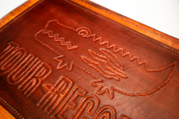 ・展示物: 革職人のご夫婦によるコーポレートロゴおよびブランドロゴのレザー製看板