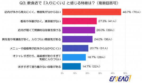 調査結果3:飲食店で『入りにくい』と感じる特徴は?※複数回答可(注3)