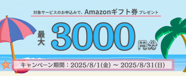 Winserver(ウィンサーバー/運営会社:アシストアップ株式会社、所在地:大阪府大阪市、代表取締役:青木 勝彦)は、2025年8月1日(金)〜8月31日(日)の期間、Amazonギフト券キャンペーンを実施いたします。