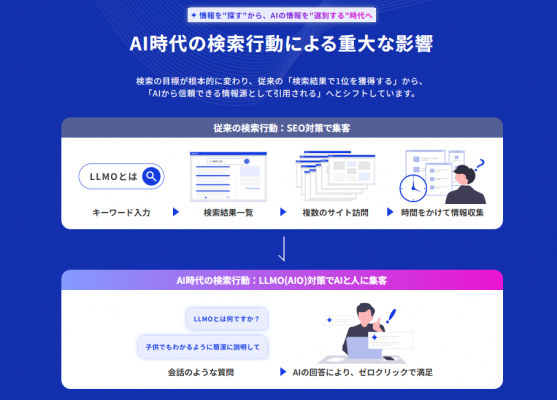 「自分で探す検索」から「 AI が提示する検索」へと進化する中で、検索結果に表示されてもクリックされない “ゼロクリック” 現象が顕著になり、従来の SEO 対策だけでは成果につながりにくい状況が生まれています。