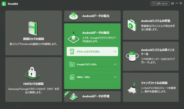 以上は液晶が壊れたスマホからデータを取り出す方法です。様々な方法がありますが、一番簡単なのはDroidKitという専用ツールです。DroidKitはデータの移行だけではなく、もしスマホの故障でデータが勝手に削除された場合にもデータを復元できます、もしデータの移行や復元などの必要があれば、DroidKitをダウンロードして試してみてください。