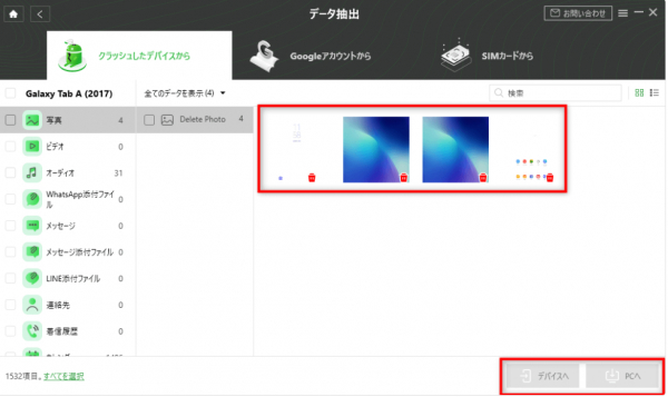 Step4.修復に成功して取り出したいデータを選択 > 「デバイスへ」または「PCへ」をクリックします。