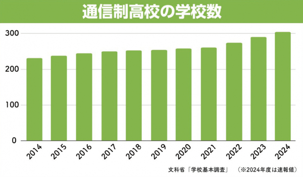 2024年には全国の学校数が300を超えるなど、近年、通信制高校への注目が急速に高まっています。不登校生の進学先というイメージも強かった通信制高校ですが、社会の変化と教育に対する価値観の多様化に伴い、積極的に進学先として考える子どもたちは年々増加しています。一方で、学校現場の先生方は、通信制高校の入試に対してまだまだ情報が不足しているのが現状です。