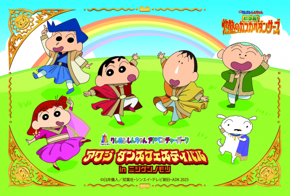 兵庫県立淡路島公園アニメパーク「ニジゲンノモリ」の人気アトラクション「クレヨンしんちゃんアドベンチャーパーク」では、エリア内のキッズエリア「のんびりのはら」にて、最新作「映画クレヨンしんちゃん 超華麗!灼熱のカスカベダンサーズ」の公開を記念し、連動イベント『アワジダンスフェスティバルinニジゲンノモリ』を2025年8月10日(日)〜9月30日(火)の期間限定で開催いたします。