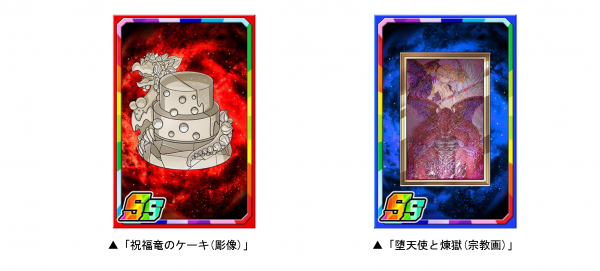 ダンジョンのボスモンスターを倒すと、まれに新たな限定子分カード「祝福竜のケーキ(彫像)」「堕天使と煉獄(宗教画)」が手に入ります。限定子分カードは複数枚集めると進化ができ、子分スキルの効果が強力になります。