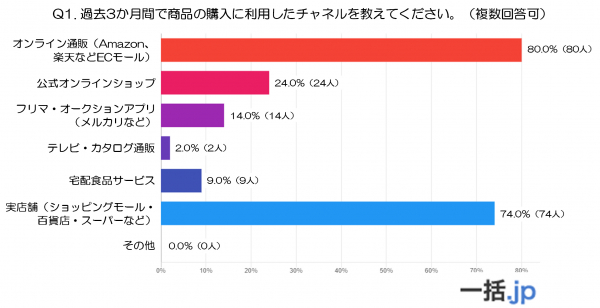 調査結果1:過去3か月間で商品の購入に利用したチャネルを教えてください。※複数回答可