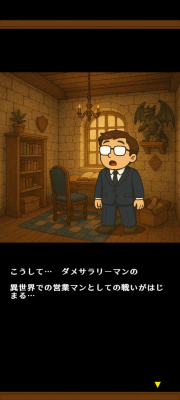 「異世界営業マン」は、現実世界の冴えない営業マンが異世界で活躍する、カードデッキ構築型のローグライクゲームです。