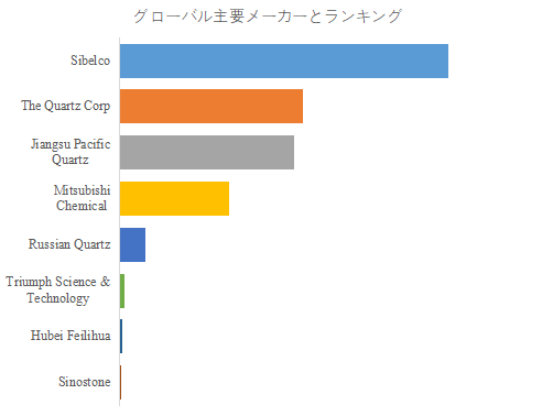 LP Informationのトップ企業研究センターによると、高純度石英砂の世界的な主要製造業者には、Sibelco、 The Quartz Corp、 Jiangsu Pacific Quartz、 Russian Quartz、 Mitsubishi Chemical、 Triumph Science & Technology、 Hubei Feilihua、 Sinostoneなどが含まれている。2023年、世界のトップ5企業は約71.0%の市場シェアを持っていた。