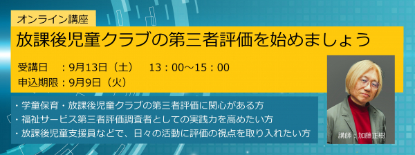 北海道ではまだ評価実績がない「放課後児童クラブ・学童保育の第三者評価」について、ふくしのよろずや神内商店主催、講師・加藤正樹(評価実績1000件超)によるオンライン研修を9月13日(土)に開催します。