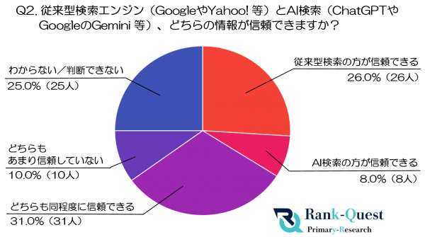 2.従来型検索エンジン(GoogleやYahoo! 等)とAI検索(ChatGPTや Gemini 等)、どちらの情報が信頼できますか?