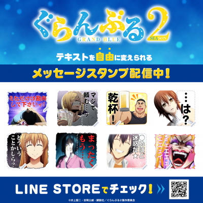 コミックス全世界累計1,000万部突破の「ぐらんぶる」。TVアニメSeason 2 のLINEスタンプがインクルーズの販売アカウントより配信開始!是非、LINEスタンプでもオリジナルTVアニメ「ぐらんぶる」の世界観をお楽しみください。