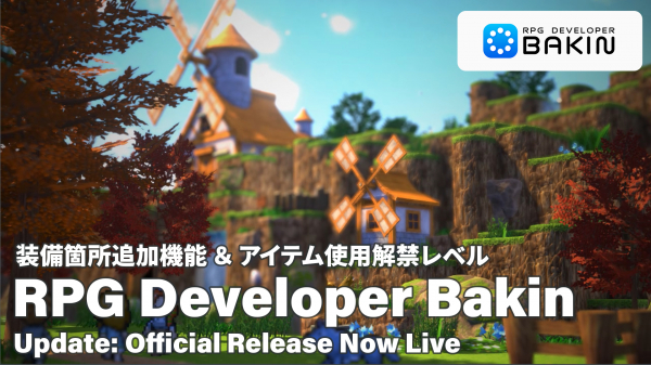 正式版リリースは、単なるアップデートにとどまらず、「誰もが手軽に本格的なRPGを創れる環境」を提供するツールとしての本格的なスタートを意味します。あわせて、本ツールでのゲーム制作を自由に体感いただける無料体験版の配信も開始しました。さらに、Bakinで作られたゲームをお試しいただけるサンプルゲームも本日発売のプラグインDLC『Localization Toolkit』により多言語対応化するアップデートを実施しました。