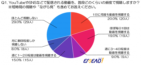 ◆ 調査1:YouTubeやSNSなどで配信される動画の視聴頻度