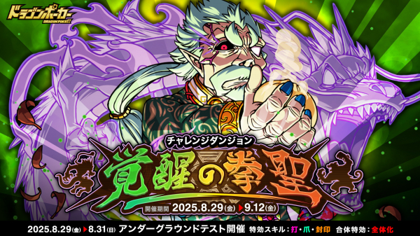 株式会社アソビズム(本社:東京都千代田区、代表取締役:大手智之)は、App Store・Google Playにて好評配信中のリアルタイム合体カードバトル『ドラゴンポーカー』で、2025年8月29日(金)よりチャレンジダンジョン「覚醒の拳聖」を開催いたします。