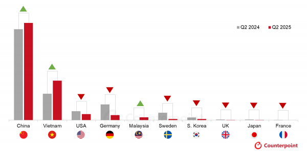 第2四半期に市場シェアが63%に拡大した中国系OEMは、現地生産、EVラインナップの拡充、競争力のある価格戦略を通じて急速に適応し、東南アジア全域でその地位を拡大しました。これは、市場エコシステムが中国のEV戦略をますます支持していることを如実に示しています。ベトナムのVinFastもシェアを伸ばし、国家の産業政策と生産能力の増強が市場の成長に繋がっていることを浮き彫りにしました。マレーシアもシェアを伸ばしました。