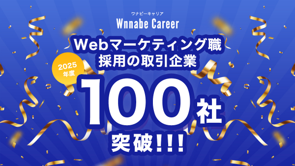 Web・広告業界に特化した転職支援エージェント「Wannabe Career(ワナビーキャリア)」を運営する株式会社Shareway(シェアウェイ)(東京都杉並区:代表取締役 森田吏)は、Webマーケティング職の採用取引企業数がこのたび100社を突破したことをお知らせいたします。