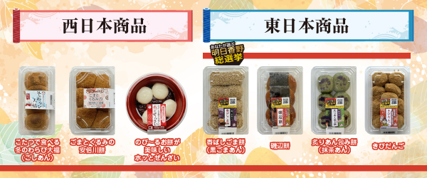 全国のスーパーマーケット様を中心に、皆様に『「ちょっと食べる」喜び』を毎日お届けし続け50年。和菓子専科・明日香野から新商品のご案内です。2025年11月1日から販売を開始する新商品と、西日本・東日本におけるこの時期一押しの商品をご案内いたします。