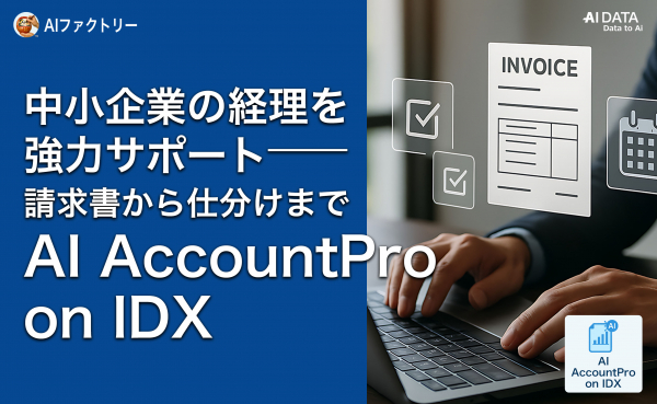 企業データとAIの利活用カンパニー、AIデータ株式会社(本社:東京都港区、代表取締役社長 佐々木隆仁、以下AIデータ社)は、中小企業向けに経理・会計業務の効率化を実現する次世代AIソリューション 「AI AccountPro on IDX」 を提供開始しました。