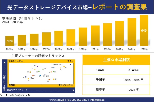 SDKI Analytics(本社:東京都渋谷区)は、このたび、2025年10月22に「光データストレージデバイス市場調査レポート:2025−2035年の市場規模、シェア、傾向の予測」を発表しました。光データストレージデバイスに関する市場調査レポートには、統計的および分析的アプローチを使用した予測評価が含まれています。この調査レポートでは、一次および二次調査方法を使用して分析された主要な業界洞察を通じて将来の傾向を理解できるようにすることで、主要な市場動向を読者に説明しています。