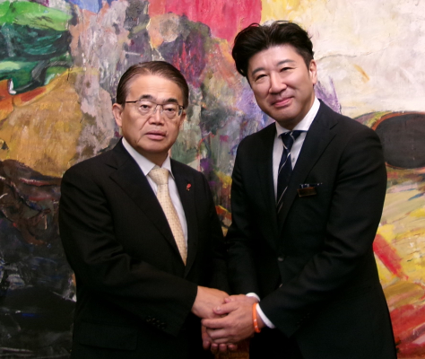 (写真)大村秀章愛知県知事(左)と当社愛知支社長の深谷/フォーラム当日にて