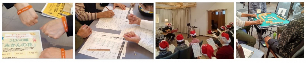 「みかんの花」は、認知症の当事者の方はもちろん、そのご家族やサポートの方、地域にお住いの方が誰でも参加できる、月に一度のつどいの場です。お話会や脳トレ、健康マージャンなどのプログラムや、東海市オリジナル体操など、みんなで一緒に楽しみながら自由に過ごします。