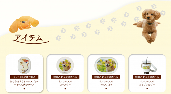癒しの犬イラストアイテム、オリジナル犬写真プリントアイテム販売