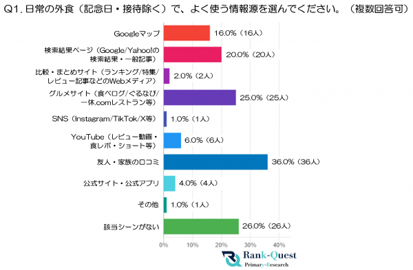 そこで、SEO対策支援実績4,300社を誇るランクエスト(https://rank-quest.jp/column/column/how-to-seo/ )は、70代以上の男女100名を対象にアンケートを実施しました。日常の外食から特別な日の食事まで、どのように情報を集め、何を基準にお店を選び、どんな方法で検索しているのか。70代以上の飲食店選びにおける情報源・意思決定・検索行動の実態を、多角的に分析しています。