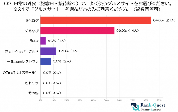 ◆ 調査2: 日常の外食でよく使うグルメサイト