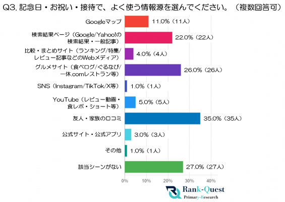 3.記念日・お祝い・接待で、よく使う情報源を選んでください。(複数回答可:注3)