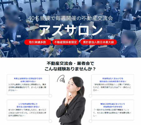 東京都心部を中心に、1都3県で不動産販売事業を行う株式会社アズ企画設計(東京都千代田区、代表取締役:松本俊人)は、主催する不動産交流会「アズサロン」の専用サイトを制作、公開いたしました。