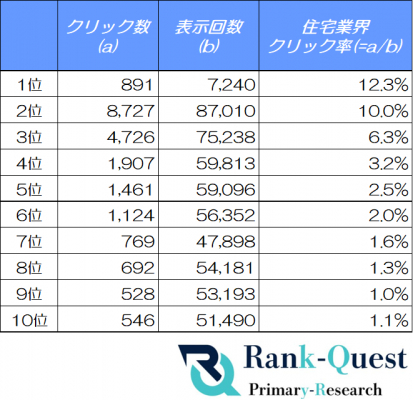 SEO対策支援実績4,300社超のランクエスト(https://rank-quest.jp/column/column/how-to-seo/ )は、2025年10月に住宅業界のクライアントサイトを対象とした「検索順位別クリック率(クリック率)」の独自調査を実施しました。