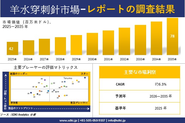 SDKI Analytics(本社:東京都渋谷区)は、このたび、2025年12月18に「羊水穿刺針市場調査レポート:2026-2035年の市場規模、シェア、傾向の予測」を発表しました。羊水穿刺針に関する市場調査レポートには、統計的および分析的アプローチを使用した予測評価が含まれています。この調査レポートでは、一次および二次調査方法を使用して分析された主要な業界洞察を通じて将来の傾向を理解できるようにすることで、主要な市場動向を読者に説明しています。