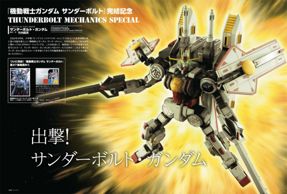 2025 年9月末、小学館「ビッグコミックスペリオール」にて13 年という長期連載の末に堂々完結を果たした『機動戦士ガンダム サンダーボルト』。立体化企画として長年本作に関わってきた月刊ホビージャパンでは、これを記念して、最終話にてイオが搭乗する可変モビルスーツ、サンダーボルト・ガンダムを1/100スケールで立体化! これまで多くのサンダーボルト版モビルスーツを手掛けてきた竹内陽亮渾身のスクラッチモデルをお楽しみいただきたい。