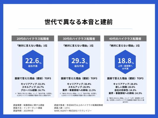 本調査から、ハイクラス転職者が面接で語る理由と、実際に抱えている本音の乖離が明らかになりました。