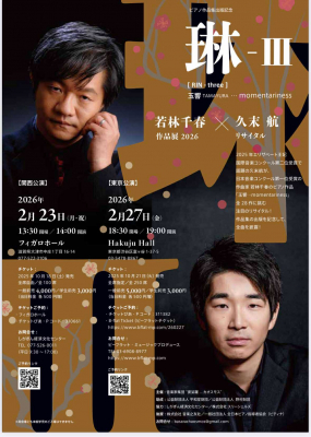 若林千春 作品展 2026 × 久末航 ピアノリサイタルを白寿ホール(渋谷区)で開催!(2026年2月27日)