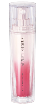 「アスタリフトインフォーカス セルアクティブセラム」は、肌本来の力をサポートし、輝きとハリに満ちた美肌へと導く総合エイジングケア(*1)美容液です。若々しい印象を与える肌のメカニズムに着目し、「ナノアスタキサンチン CP+」のほかに、独自技術でナノ分散した「ナノボスウェリン酸」(*8)を含む成分「ナノセルアクティブ」(*9)を配合。