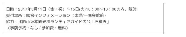 比叡山で 夏の観光客向け無料参加イベントを開催「世界文化遺産 比叡山延暦寺への誘い 2017夏