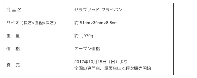 京セラ株式会社は、人気のキッチン用品「セラブリッド フライパン」の新たなライン アップとして直径30cmサイズを商品化し、本年10月15日(日)より全国の専門店、量販店などで順次販売開始しますのでお知らせします。