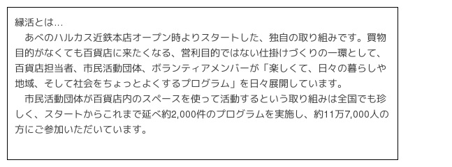 芸術、伝統文化、多様な文化、食などを通して多世代が交流し、感動を共有したり、多様な価値観を身を持って経験したりすることによって本当の豊かさが生み出されるための一助となることを目指し活動しています。