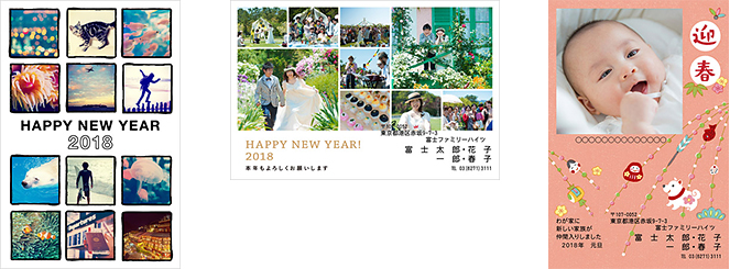 また、複数種類の年賀状を1度に注文された方を対象とした割引サービス(*2)や、年賀状と同時に注文できる「宛名印刷」サービスの利用時に登録した住所録を保管するサービス(*3)も新たに開始し、「フジカラ―写真年賀状」を、さらに便利にご利用いただけるようになりました。