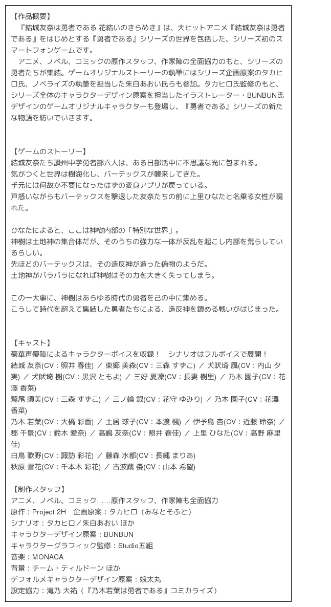 『結城友奈は勇者である 花結いのきらめき』基本情報
