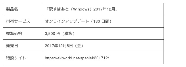 「駅すぱあと(Windows)2017年12月」特設サイト:https://ekiworld.net/special/201712/