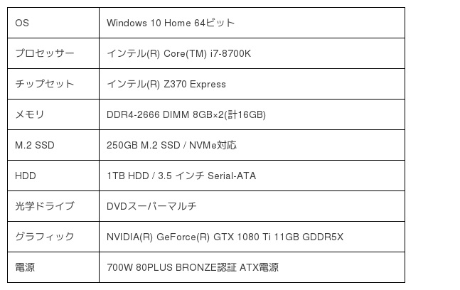 ■ Core(TM)i7-8700KとGeForce(R)GTX1080Tiを搭載