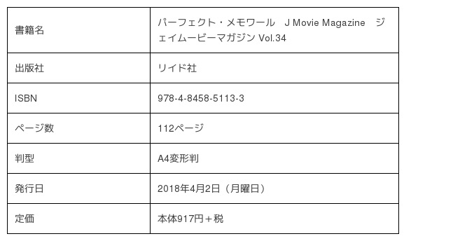 J Movie Magazine ジェイムービーマガジン Vol.34刊行のお知らせ