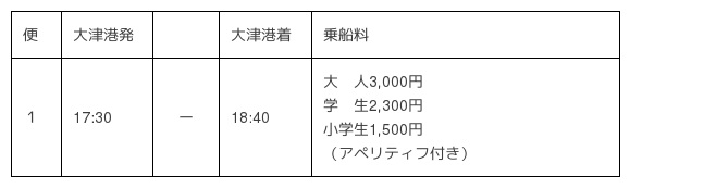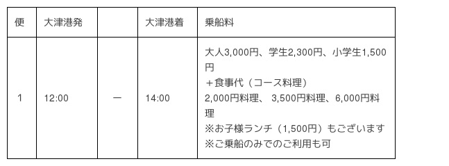 <別紙2> 特別クルーズ GW(4/28〜5/6)期間中の運航ダイヤ・料金