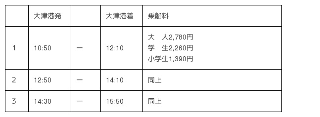 今津港:通常便(4便)+臨時便(1便)の5便にて運航
